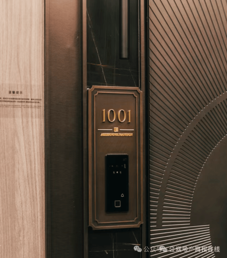 单元入户大堂同样质感十足,门把手都极具艺术性。