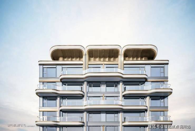 标准层全开敞阳台(全系首层架空层、高层产品二层无开敞阳台设计),非常有记忆点,打破棱角分明的方形常规设计,奇偶错层的开敞阳台为定制流线型造型,仿佛一片片云朵镶嵌在玻璃盒子上。