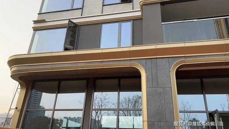 从开发商宣传看,外立面主要是玻璃和真石漆,局部点缀金黄色铝板;地下车库有吊顶和星空顶;地面入户有金黄色铝板“官帽”门头,地面和车库入户大堂大面积墙砖颇显大气;架空层分别设置不同主题;三层隔音玻璃。等等。实际兑现如何,且看后文分解。
