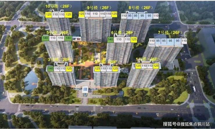 项目共规划9栋住宅,楼层20-26F,其中2、3号楼为20层,其余均为26层,总户数1002户,户均面积约112平方米。
