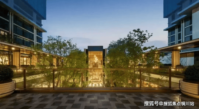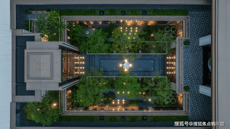 "一轴五园、一栋一花园"的生态画卷徐徐展开。中庭园林以西班牙故宫“阿尔罕布拉宫”为灵感,列阵跳泉与幻影蓝水台,以富有节奏的水景序列营造出仪式感;乌桕、油橄榄等全冠名木错落,四季成景,让每一次归家都宛如步入静谧与诗意交织的度假奢境。