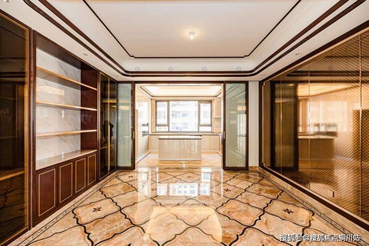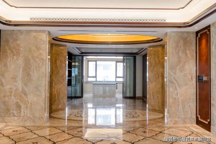 很多人形容“海派”为“低调的奢华”,运用不可再生地稀有材质和无法复制的匠心工艺,打造代代传承的臻品。在选材上,地面采用意大利进口纯天然大理石铺装,其中镶嵌珍贵的玉石;玄关柜木材选用白影木皮,凸显出高雅、古典、原生态、质朴的美感。
