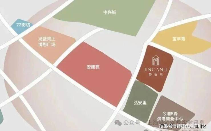 东邻今潮8弄(巴金图书馆、滨港商业中心已绽放)、西接安康苑&龙盛湾上(规划超甲办公/星级酒店/石库门商业),南望弘安里传世石库门大宅。