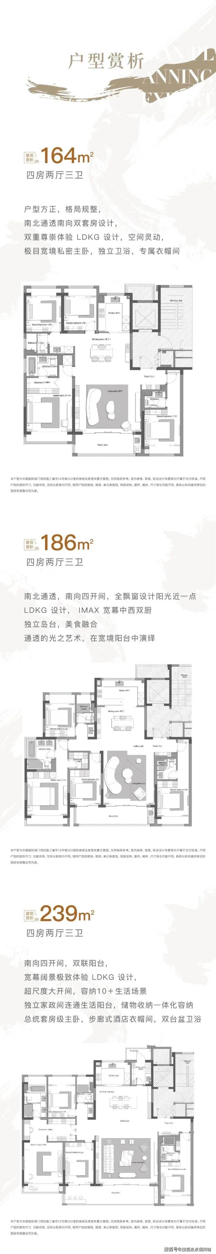 项目主打建面约164-239㎡的全四房产品,均为装修交付。以大面宽、全明通透、功能分区明确为特点,为主城改善家庭量身定制,满足多代同堂、社交宴请、静谧休憩等全方位生活场景,让每一寸空间都承载着家庭的温馨与尊崇。无论是164平米户型还是239平米大平层,都旨在为业主提供极致的居住体验。