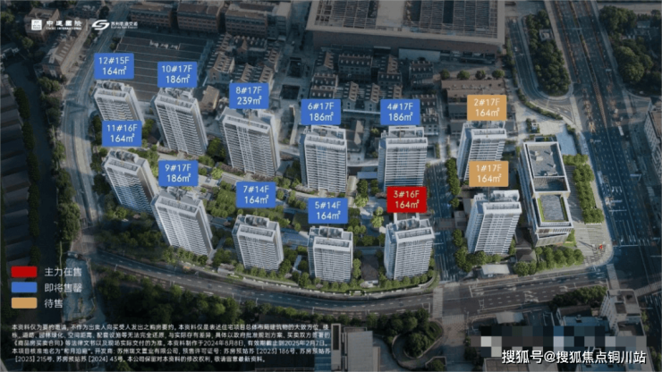 地段位置:姑苏区吴门桥街道人民路西,端文路北 开发品牌:中建国际&苏州轨交 社区规划:拟建12栋住宅和1栋商业、1栋科研办公 住宅产品:14-17层高层,总户数约385户 户型面积:建面约164㎡、189㎡和239㎡,均为四房两厅三卫 装修配置:装修交付,装标3000-6000元/平 取证消息:首开7、8、10、11、12栋,户型为164㎡、186㎡、239㎡ 整体均价:约52000元/㎡ 总价区间:约808-1297万