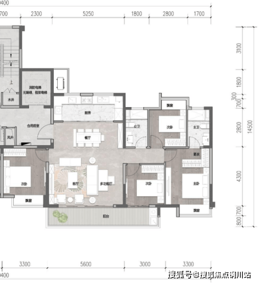 客餐厅超大共享方厅,格局方正,餐厨互动性强。