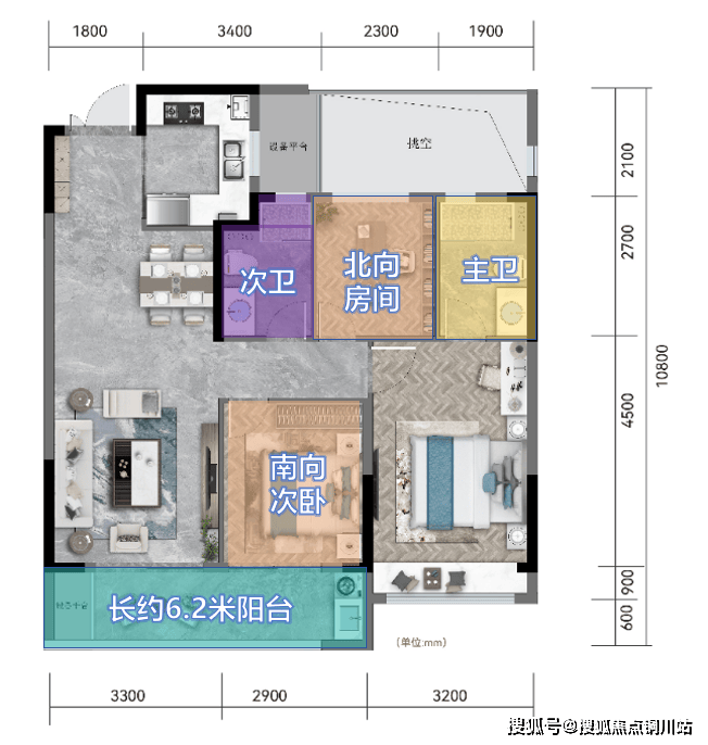 而北向房间可根据家庭需求,打造成学习办公、休闲娱乐或二胎卧室等使用。