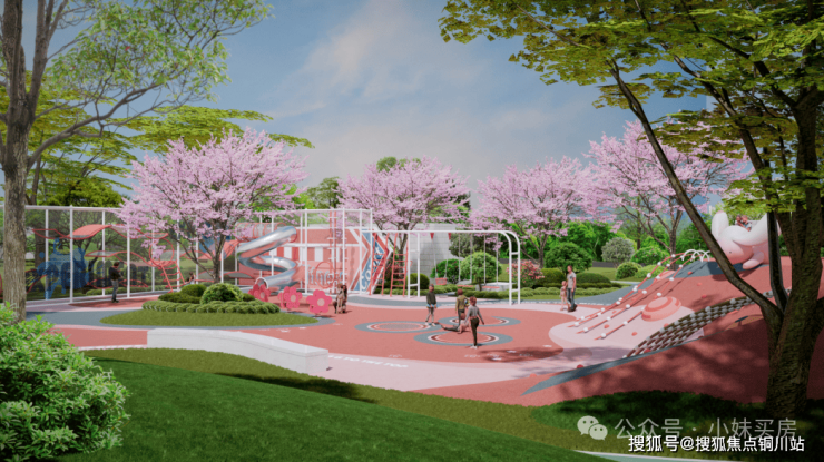 小区内打造了双轴两环一园五境,充分考虑不同年龄段需求,规划有生态草坪花园、林荫美学会客厅、亲子乐园、归家入户平台等,让有老幼中青各得其乐。