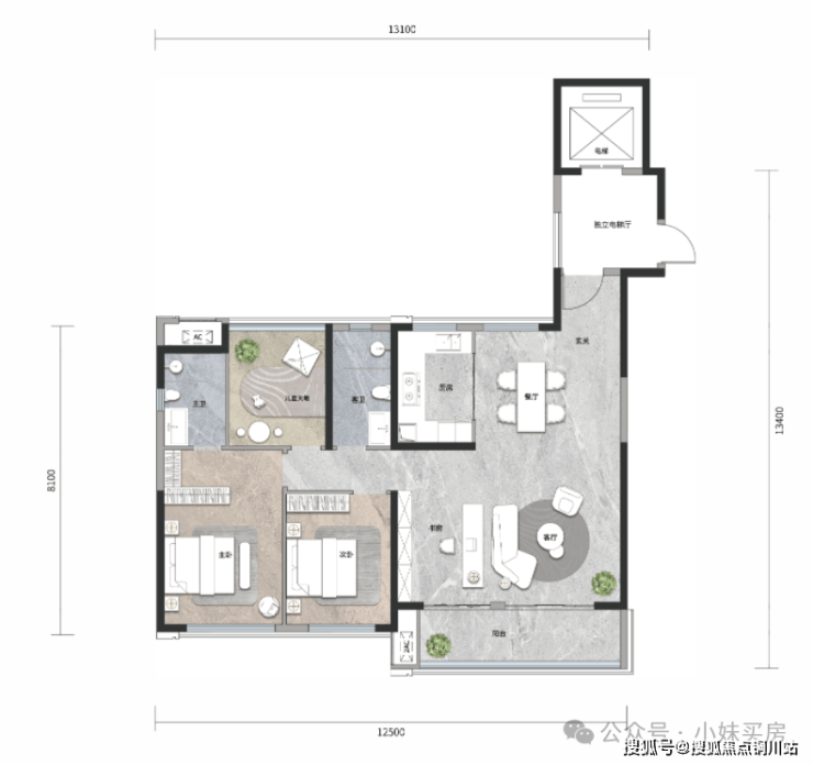 建面约126平边户,居住体验完爆传统建面约150平户型。