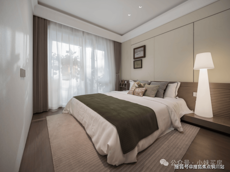 三房全部直面小区中心园林,而且两间卧室全部是大面积落地窗,IMAX广角视野,揽尽一窗美景。主卧套房,预留衣帽间空间,尊崇感满满。