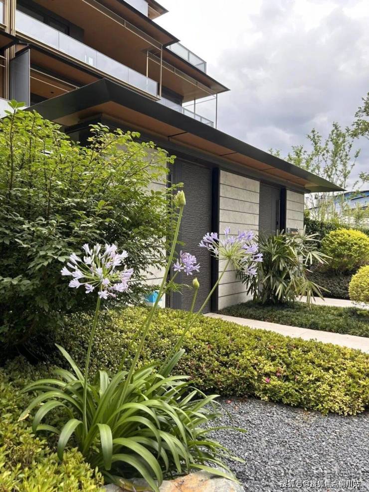 绿城湖畔云庐还是绿城的“亲儿子”,用料扎实。叠墅产品保留了传统建筑的坡屋顶、飞檐、挂落等中式元素,也使用了大面落地玻璃窗、铝板、金属线条等现代元素。