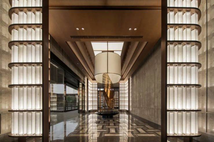 电梯厅置入的“黄鹤楼”装置,以现代艺术手法解构,传达出武汉的在地文化。