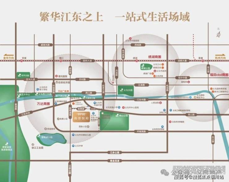 •江东人居高地:位于义乌江东街道西南角,是链接双江湖板块的桥头堡位置,随着双江湖板块规划落地,项目所处板块必将日新月异,周边配套换新升级。