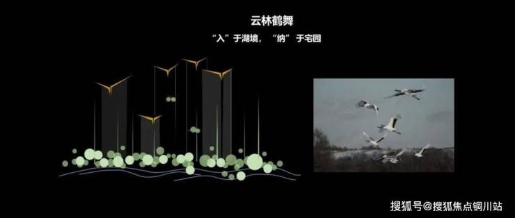立意取自梦泽湖生态美景,从展翅飞翔的水鸟提取建筑塔冠意向,建筑以水鸟鹤舞飞翔的姿态形成群组特性,顺应自然生态界面,也呼应着城市大生态格局。
