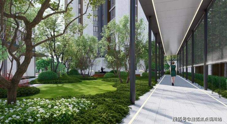 格栅、绿篱、铝板创造了一个充满细腻变化的风雨连廊灰空间。
