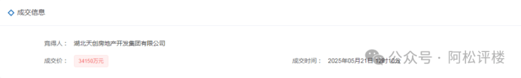 该项目地块即今2025年5月21日,湖北天创房地产开发集团有限公司竞得的P(2025)035号地块,成交价为34150万元,成交楼面价为14531.9元/平,溢价率高达约30.6%,为近年来罕见。该地块竞价多达38轮,据称吸引了7家房企参与竞拍。
