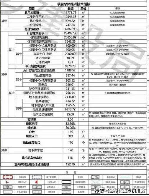 项目总用地面积约1.18万方,总建筑面积约3.29万方,计容建筑面积约2.35万方,住宅建筑面积约2.09万方,容积率2.0,户数159户,机动车停车位170个,车位配比1∶1.07,户均建筑面积约131.2平。