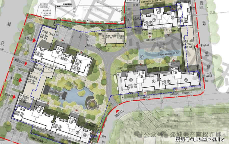 该项目共规划了4栋10-13层的小高层住宅和少量社区底商。