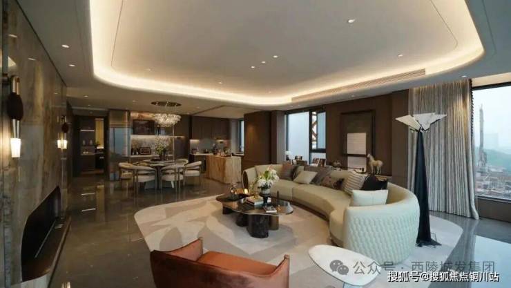 户型采用大平层设计,餐客厅一体化格局衍生出超50㎡的阔绰空间,为家庭欢聚、名流宴请提供了无限可能。