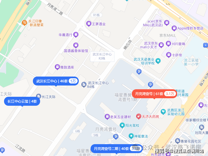 这个片区同能级的楼盘没有太多选择,在售新房唯有国铁城投·国樾滨江和武汉长江中心,二手房仅有月亮湾壹号和武汉长江中心,总价都比较贵。
