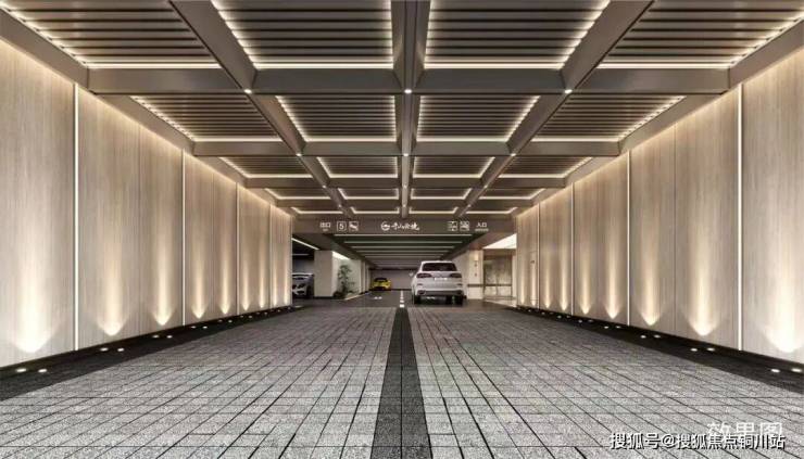 就连常被忽略的地下空间,千山云境也没半点将就。车库铝方通吊顶配随行灯光如星光引路,地库光厅大堂以镂空雕花金属板与仿云石软膜天花交织,细节显品质。