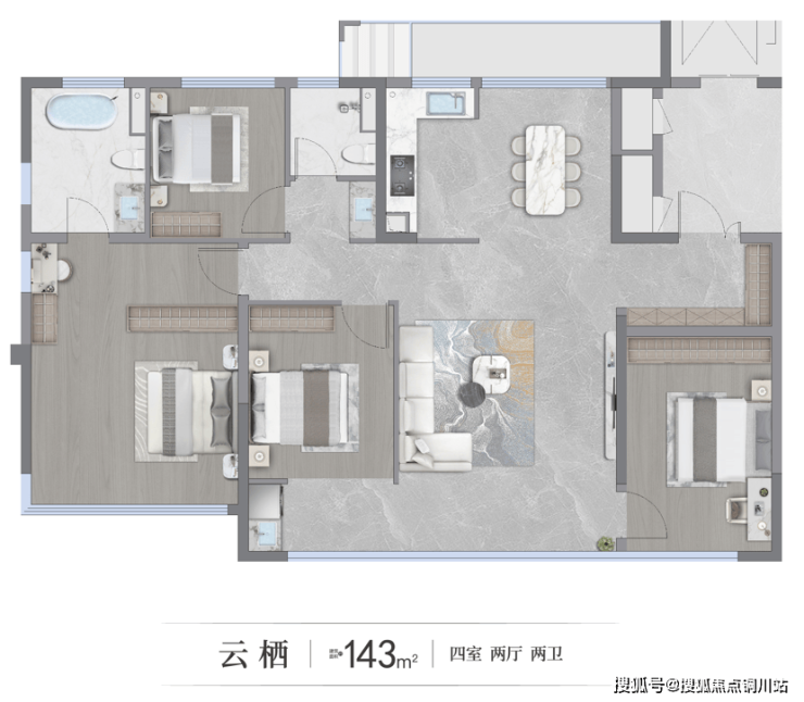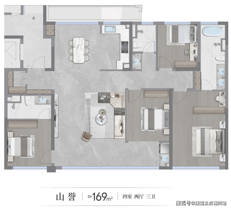 建面约127/143/169㎡户型,以三大共性设计理念,重新诠释现代舒适与美学的融合: