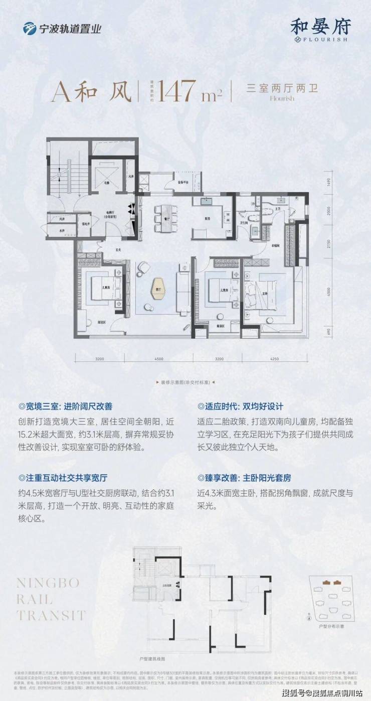 房子不仅是一处居所,更是一种关于未来生活的宣言。真正的奢华绝非材料的堆砌与面积的简单放大,而是源于对“人”的深度关怀与尊重。轨交·和晏府户型设计秉持“极致舒适度” 与 “家庭平权理念”两大核心准则,创新打造建筑面积约147-202㎡全系改善大户型,以全维全家均好的空间享受和细节关怀,让改善体验温暖每一个成员。