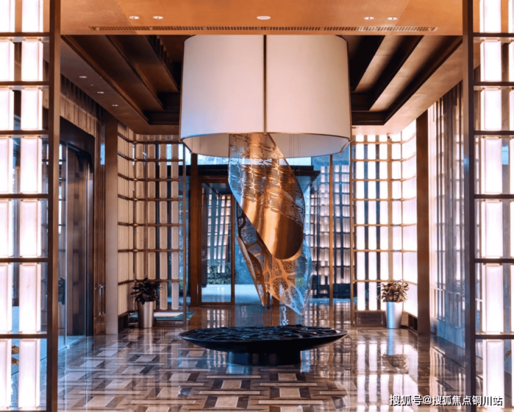 奢华大堂庄重气派,第一视觉即颇为震撼。中建壹品·汉韵公馆奢华大堂实景图