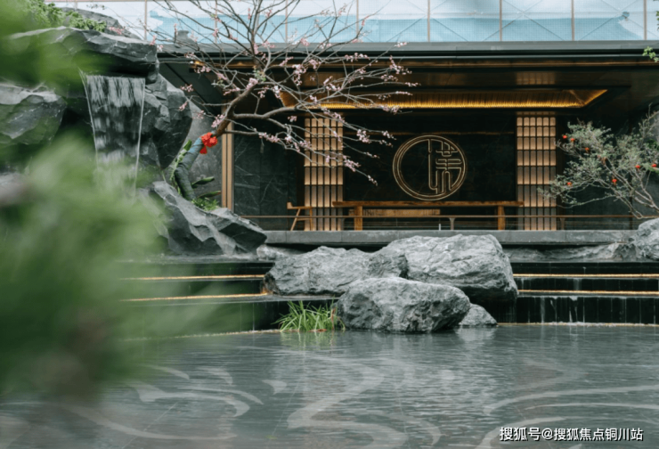 庭院园林,叠山理水,匠心独运,恰似一幅山水画卷。中建壹品·汉韵公馆下沉庭院实景图