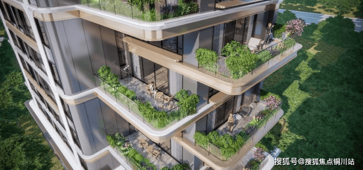 首先,将露台花园纳入精装交付体系,以约50%绿化景观交付,确保立面美学统一。同时,以降板处理+自动灌溉系统+排水预埋管等三重技术,保障花草的种植与养护,实现“云端院落”的可持续生态。