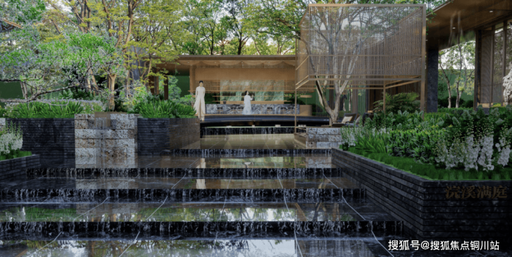 廊畔的核心水院,以“浣溪满庭”为主题打造下沉叠水景观。水流层叠而下,与香橼、红枫、乌桕相映,营造出“明月松间照,清泉石上流”的静谧意境,让归家的最后一段路成为洗去疲惫的疗愈时光。