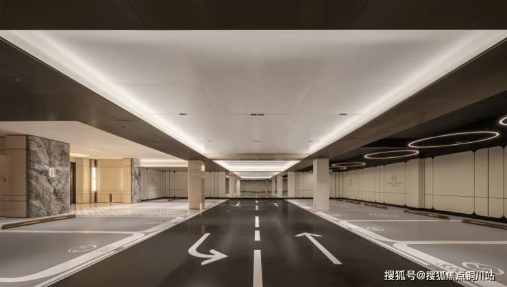 甚至乎地下车库,天熠东方也斥巨资升级,车马厅以“中枢·典藏馆”为主题,采用智能灯光控制+顶部铝板拼接的手法,不仅提升了空间尺度感和奢阔视野,还营造了归家氛围感与尊崇感。