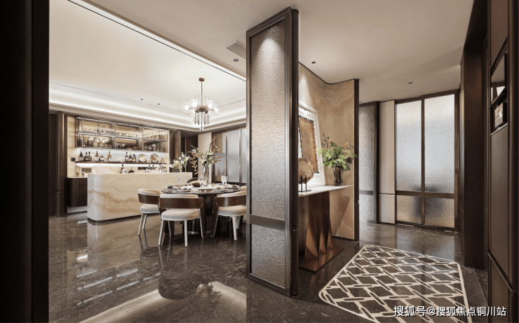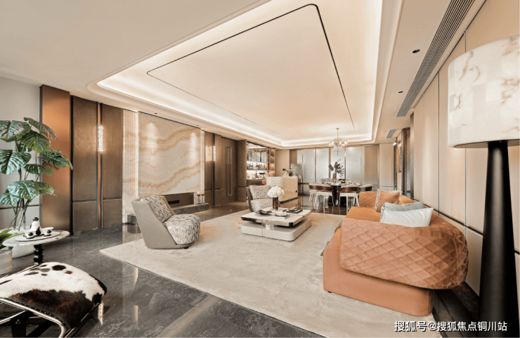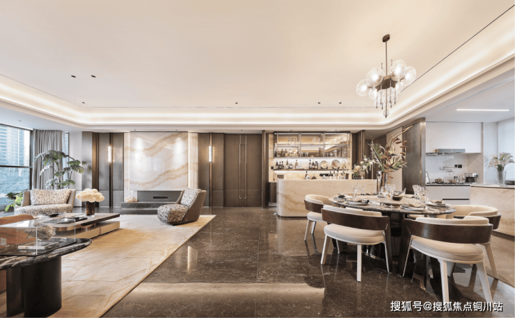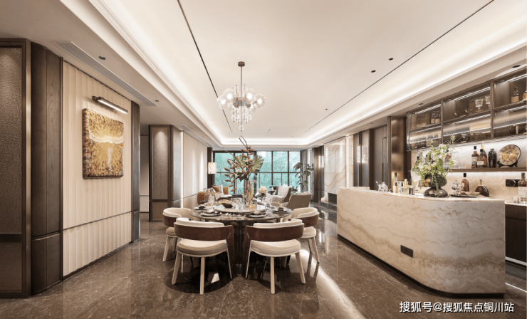 空间主调选用浅棕与古铜,搭配醇厚木调,延续了海派的雅奢质感。它平衡了东方的沉稳与国际的时尚,将城市人文底蕴与主人的审美格调,融于现代感性的设计之中。