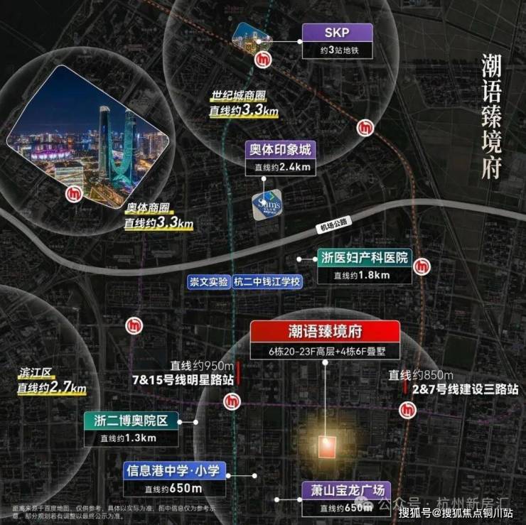 这是一个「奥体友好型」叠墅,距离奥体核心直线约3公里。杭州之门、奥体印象城、SKP等奥体地标,开车15分钟左右就能到。附近还有已经开建的奥体天街。