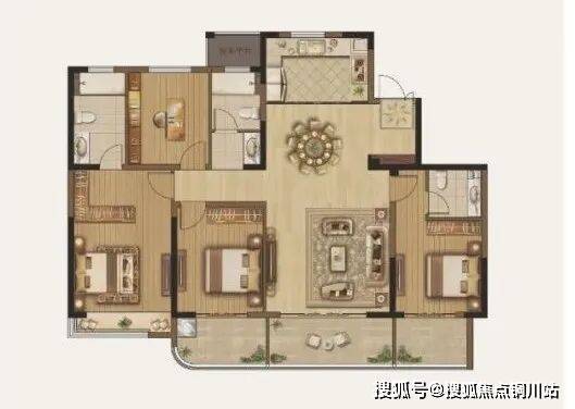 ▼建面约173㎡(四室两厅三卫):南向三阳台,四开间朝南,南向面宽约14.4米,阳台超10米,层高约3.1米,双套房、三卫的设计,功能强大。