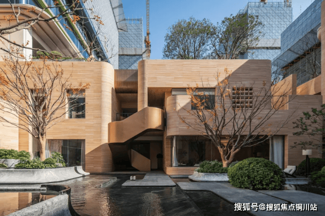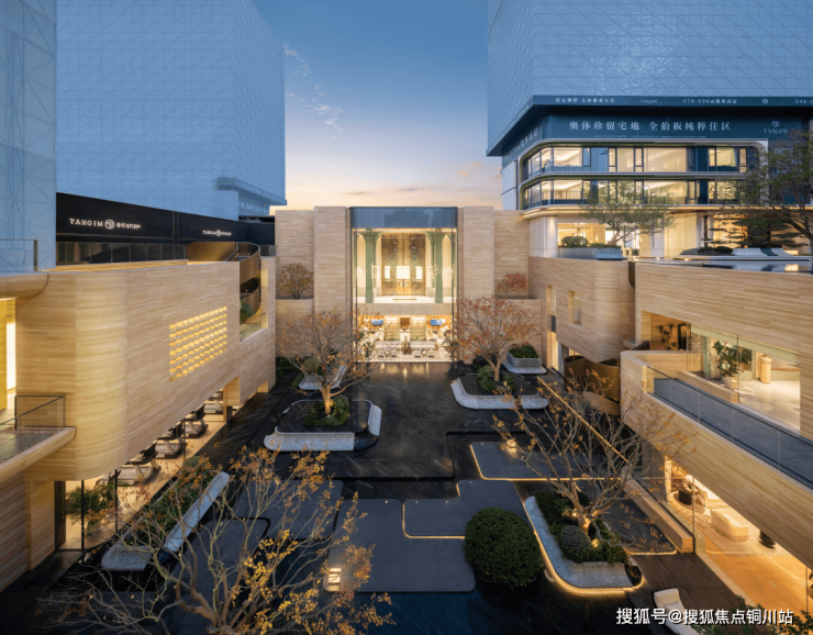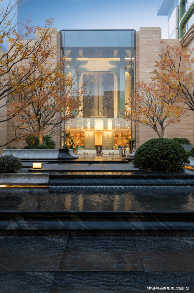 景观由JTL王小波团队执笔,以“城市山林”为理念,融合山石、玉雕与枫林元素,营造“石开玉出”的东方意境。设计以山为骨、水为脉,呼应杭州“山水交织”的在地风貌,通过建筑与植被的层次布局,在空间中再现宋画《浮玉山居图》的幽远气韵,回应居者“诗意栖居”的精神向往。