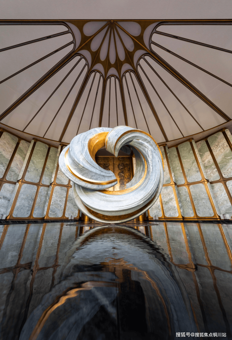 项目会所室内由CCD创始人郑忠先生主笔,参考艾迪逊酒店设计,打造出一副星河玉翠之境, 室内恒温泳池、健身房、室内高尔夫、私宴厅、茶室等高端会所配套俱全。3000㎡地下会所,融合了良渚玉琮纹样与现代材质,天珺为其取名:玉石枫林会所。