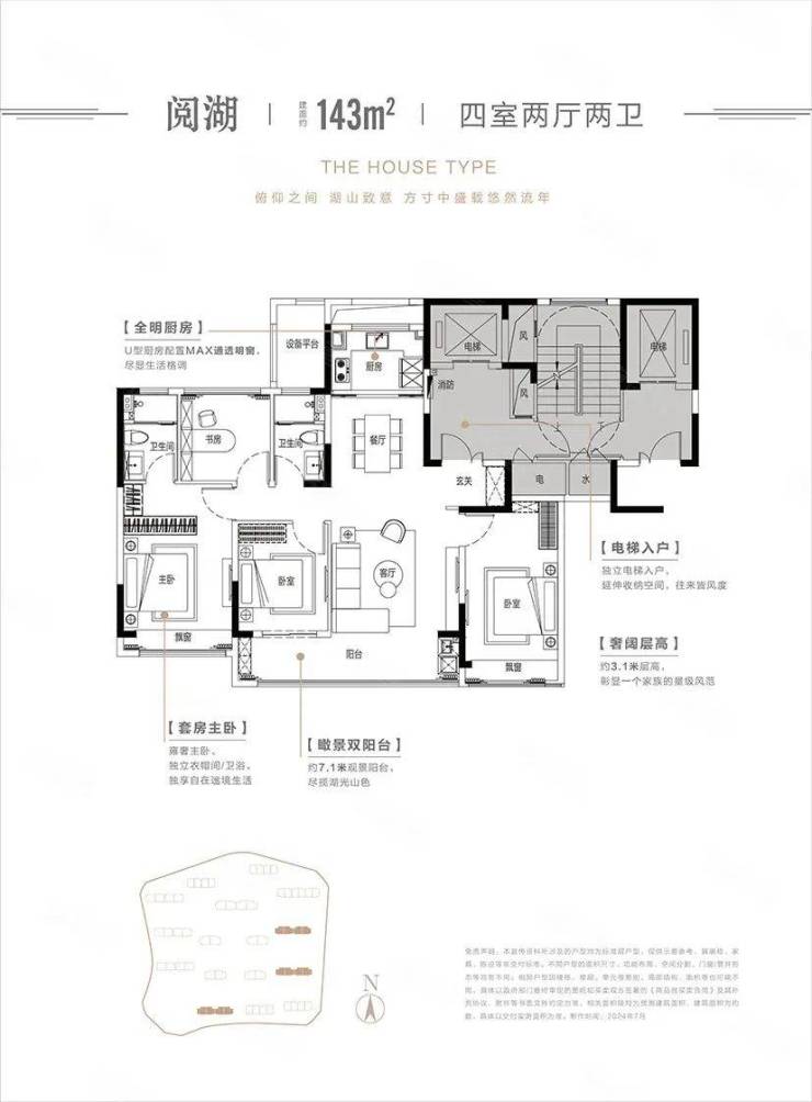 项目主力户型为建面约125㎡-177㎡的三房和四房户型。其中,建面约177㎡户型做到了3.1米层高,套房主卧,L型衣帽间,搭配双盆双浴设计。双面宽阳台,约8.6米拾趣阳台,约5.5米超大宽厅,南向套房卧室,搭配独立卫生间。