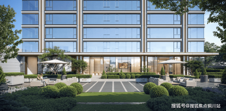 琅誉为3万+豪宅同款公建化立面,大面积运用干挂石材、仿石材铝板、玻璃幕墙、鎏金塔冠等高定材料,简洁大气、线条流畅,对标美国纽约公园凉廊。