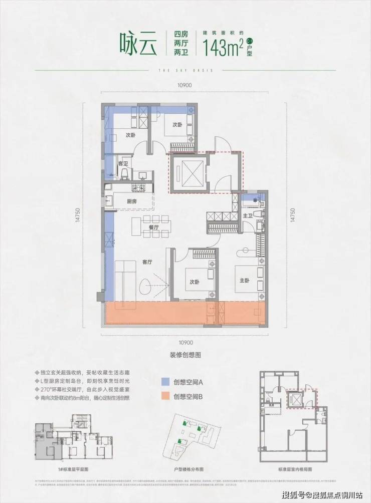 南向开间约 10.9米,次卧连通客厅共享约8米阳台。