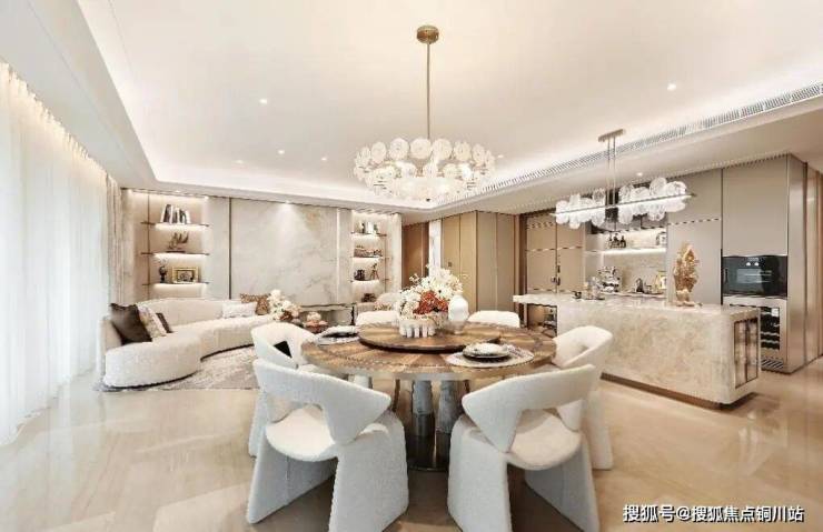 客厅仿佛一个通透的玻璃方舟,将四季光景邀为座上宾。晨光熹微,夕阳暮霭,皆在大理石的沉稳与木饰面的温润间流转、停留。见证每一次家庭欢聚的温馨时光。