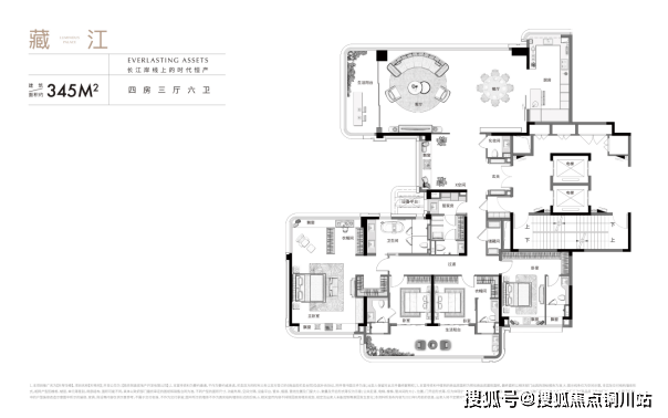卫生间作为家中功能性最强的空间,对私密性、舒适度的要求也是最高的,所以卫生间是终极改善设计比拼的重要战场。天琴华樟建面约345㎡户型卫生间数量>卧室数量,这在河西大平层市场中堪称又一“勇敢”的设计: