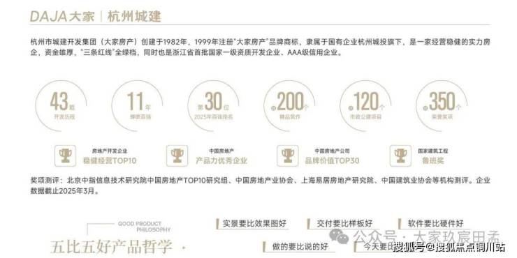 • 大家房产是拥有40余年高端住宅开发经验的杭派精工国企,多年来始终坚持“稳扎稳打”的开发节奏,不搞高周转、不踩行业红线,在全国打造了数十个标杆住宅项目,产品兑现力、交付口碑有目共睹。