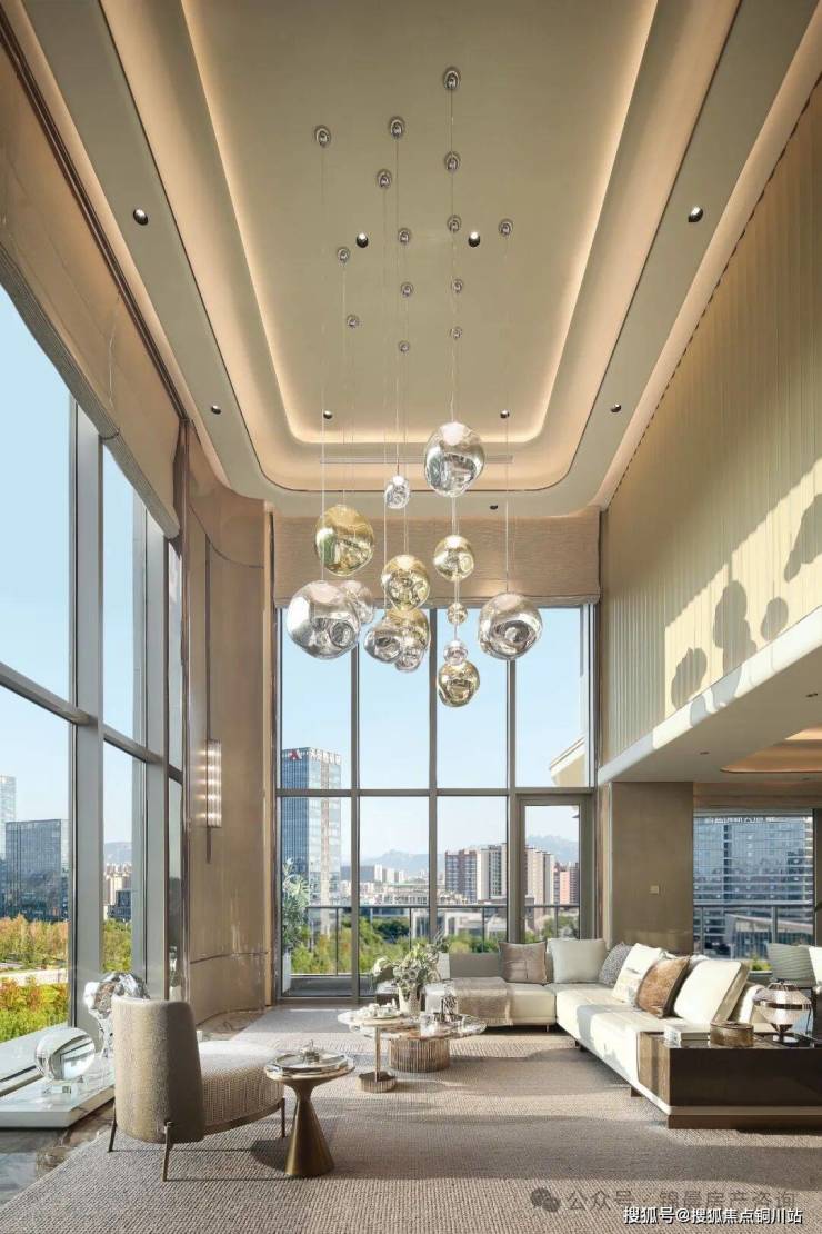 户型空间提升上,在横向面宽超过20米的设计下,创新打造了约6.6米挑空客厅大平层(部分),将别墅的垂直尺度与大平层的横向尺度融合,创造平层“墅居”生活感受。
