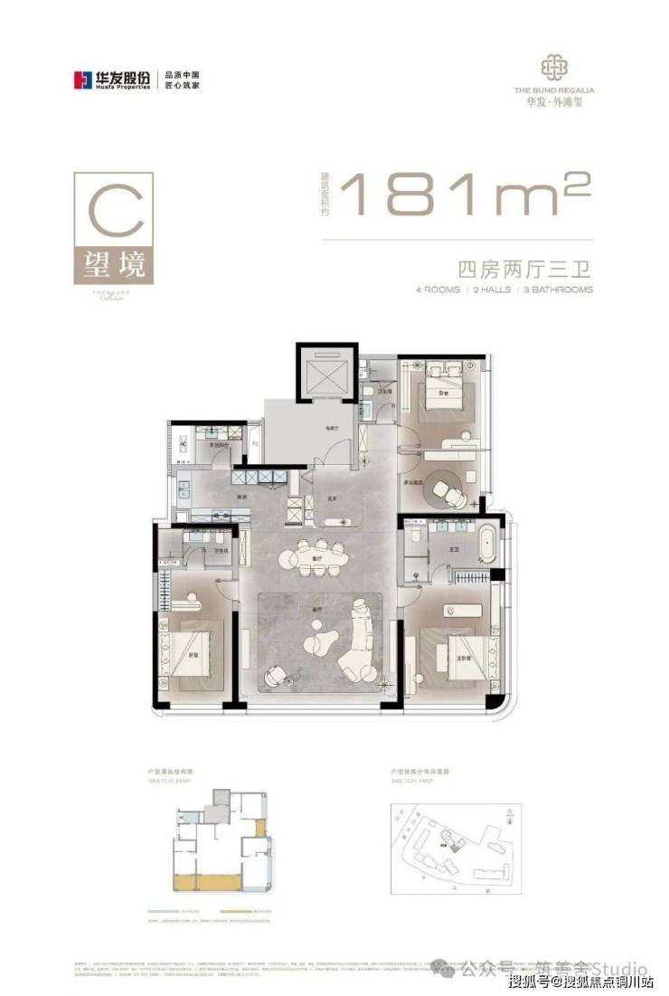 华发外滩玺,容积率仅2.98,建筑高度22-28层,是武汉长江两岸核心江景房中罕见的低密度、高舒适度项目。项目主推建面约159-244㎡大平层,综合使用率高达95%-103%,部分房源实现负公摊,且每户均配备独立电梯厅。