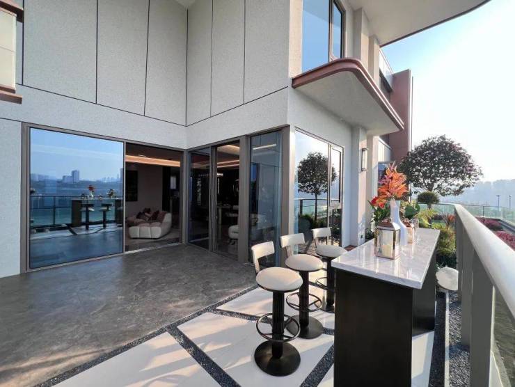 在江上的空中庭院种花、饮茶、观星,不再是诗意的幻想。重庆长嘉外滩|国瑞·长江赋建面约210㎡半岛院墅,以约57㎡空中私属庭院,将传统院墅的意境托举至云端,让院墅凌驾于江面之上;约11.4米极致花园面宽,装得下江风,也容得下四季,盛纳百种人生意趣。