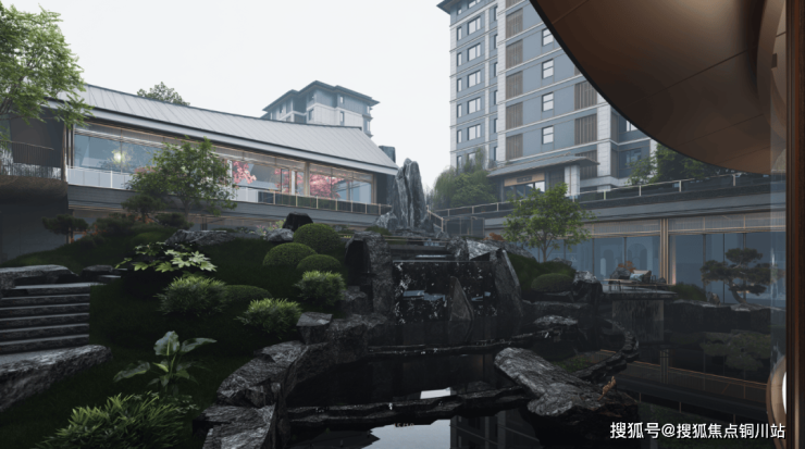 在颜值上,采用光幕美学立面,搭配质感铝板材质,倒映出城市天际线。同时,造型屋顶也与社区整体的宋代风格相得益彰,勾勒出立体时尚的建筑轮廓。在功能上,项目的创新点绝非架空层一处,专属院落、开放式阳台同样是项目的一大亮点。