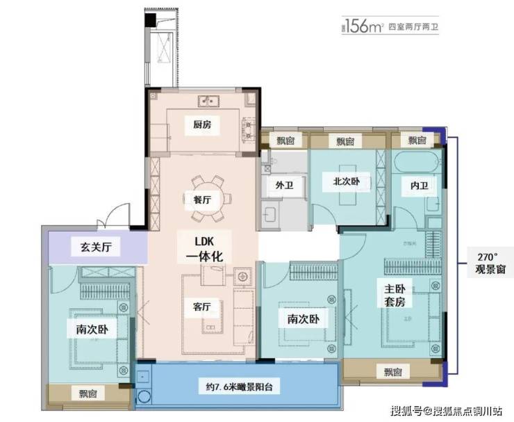 超尺度瞰景阳台,5大飘窗赠送,满足人们对大面宽、大景宽、大尺度生活的追求。主卧套房设计,自带品牌独立卫浴,预留L型步入式衣帽间,双270°多视野景观飘窗,奢适度拉满。