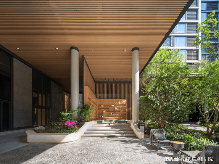 全小区覆盖、约9米高的风雨连廊不仅是业主遮风挡雨的功能区,同时也承担了项目景观空间转换的过渡。