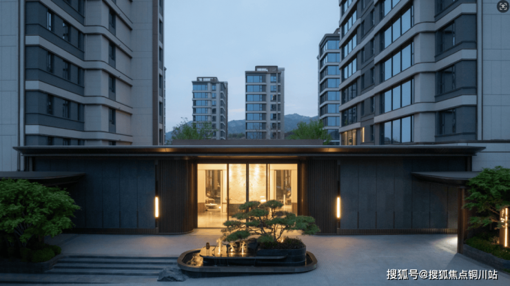 像是世园金茂府,外立面选用古典的石材基座打底,咖金色全铝板搭配大面三玻两腔宽幕玻璃,配色经典,稳重大气,高级感满满,哪怕是多年后回看也依旧符合当下的审美!
